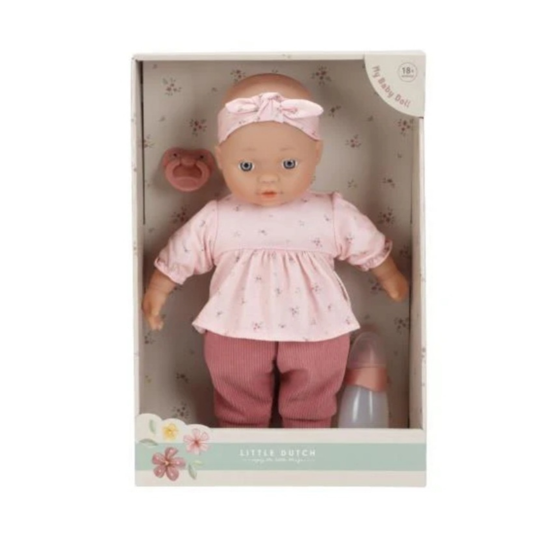 Rencontrez le bébé Lily. Donnez-lui un câlin et prenez soin d'elle. La douce Lily est une poupée adorable et réaliste avec un corps doux et câlin qui conquérera immédiatement votre cœur. Vous pouvez changer ses vêtements, l'aider à s'endormir et la calmer avec la tétine. Si elle a faim, donnez-lui le biberon de lait. Les enfants adorent imiter tout ce que font leurs parents, et cette poupée les inspirera. Lily porte un bandeau et une robe à manches longues dans le motif Rosy Meadows, avec un pantalon côtelé en dessous. Changer ses vêtements favorise la motricité fine, et la tétine et le biberon ajoutent un élément interactif au jeu.